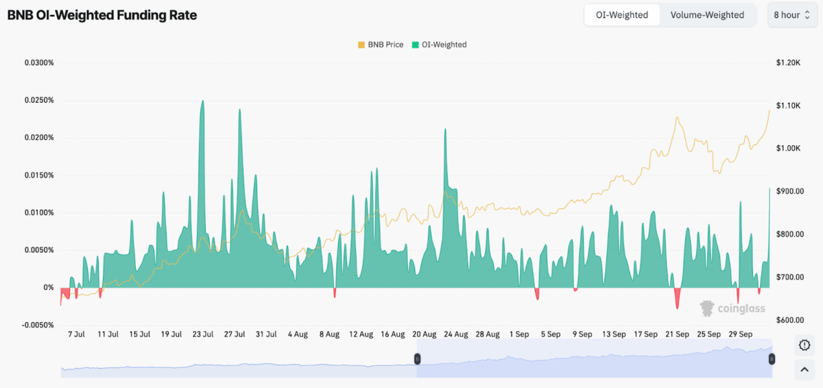 高达771万美元的BNB相关仓位被强平,其中空头仓位占734万美元,凸显出强烈的看涨情绪。Coinglass平台数据显示,BNB资金费率近三个月持续波动,反映市场存在激进布局。