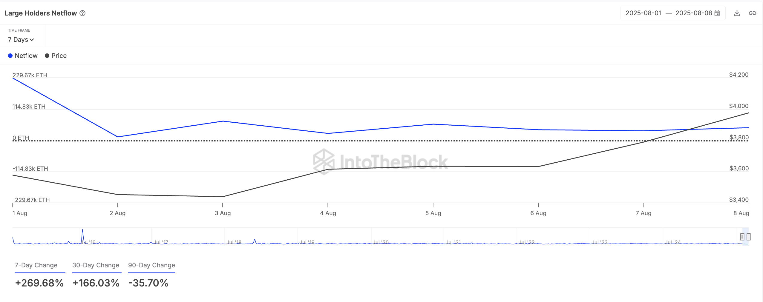 大额持币净流量指标用于衡量特定时间段内鲸鱼账户买入与卖出代币的数量差。当该指标出现如此显著的飙升,表明这些持有者正在形成强烈的增持趋势,反映出对该资产日益增长的信心和看涨预期。