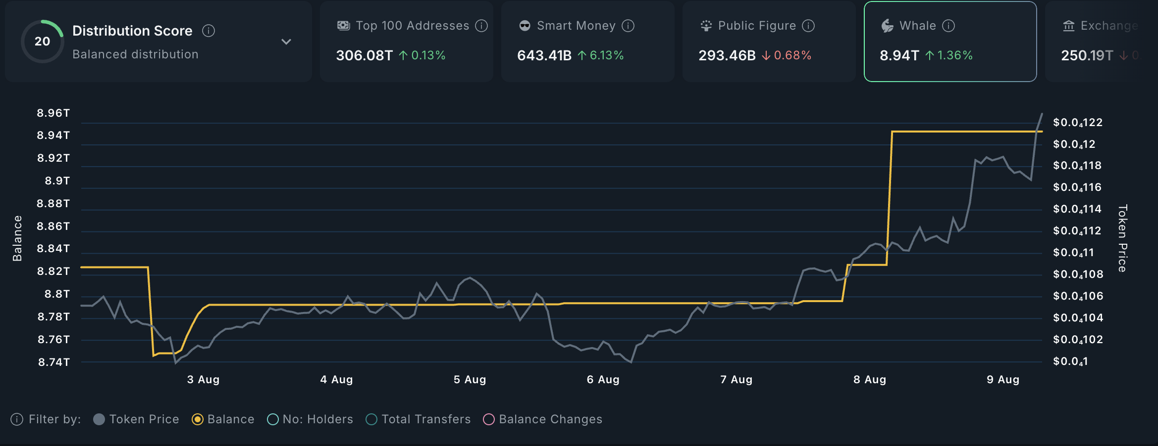 当大投资者出现此类增持趋势时,往往预示着对其短期升值潜力的认可。这种强烈的鲸鱼兴趣可能引发散户跟风买入,有助于维持和扩大PEPE近期的周线涨幅。