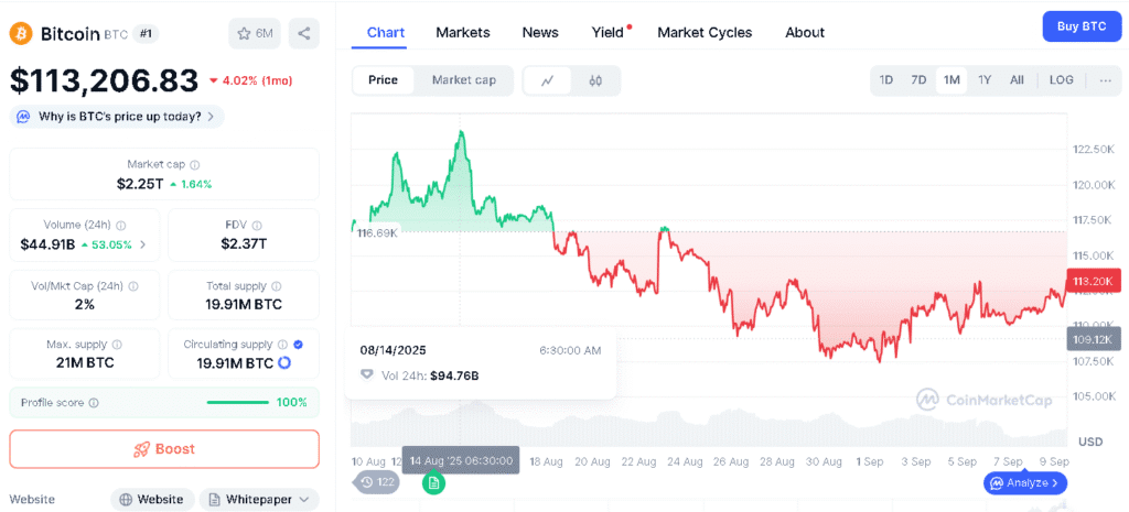 当前$BTC报价112,320美元,仅呈现小幅上涨。而此前不久,该加密货币曾触及124,128美元高点后回落。