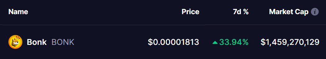 以太坊(ETH)在过去7天内上涨超4%,现报2520美元价位,其复苏势头正蔓延至山寨币和迷因币领域。作为Solana生态的头部迷因币,Bonk(BONK)本周以33%涨幅成为表现最佳资产之一。
