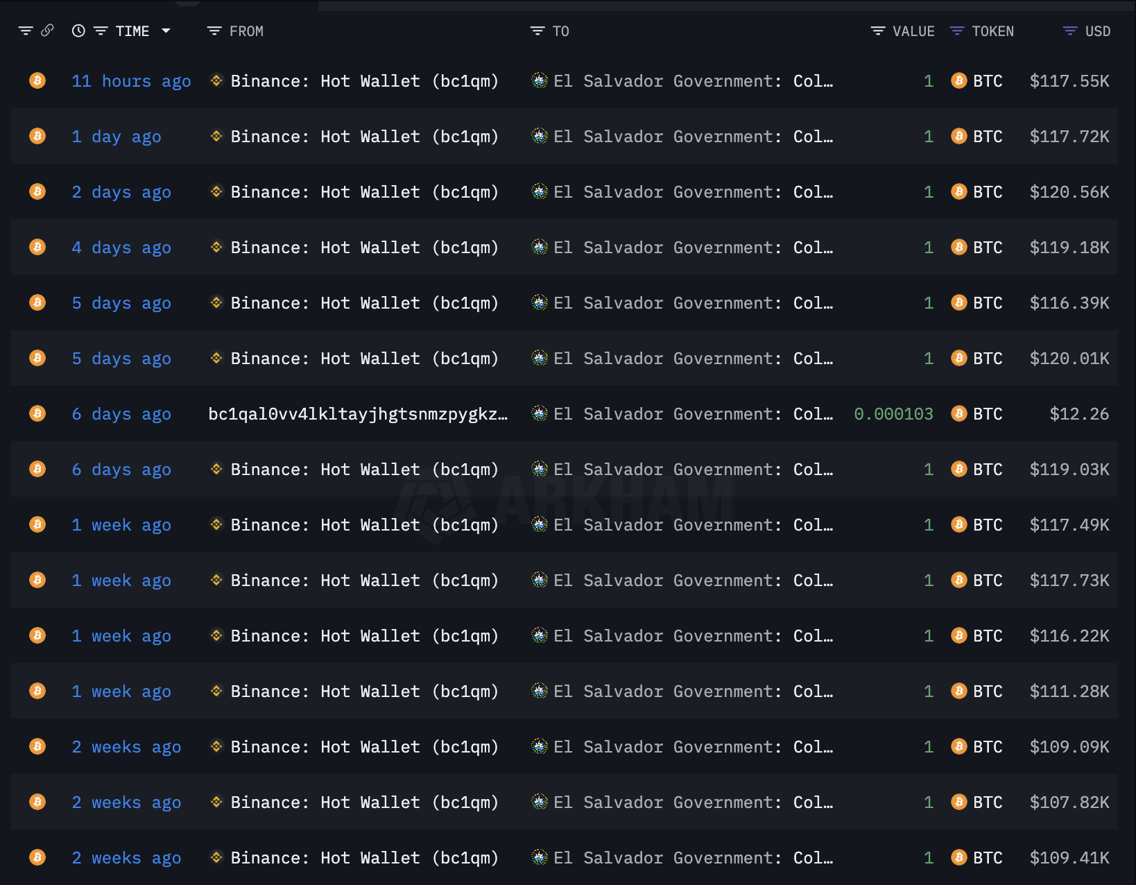 布克尔总统多次强调不会减弱比特币收购力度,并表现出对抗全球金融排斥的决心。比特币办公室声称持有约6,242枚BTC(价值约7.37亿美元)。然而Arkham数据显示,每日观察到的比特币转账来自