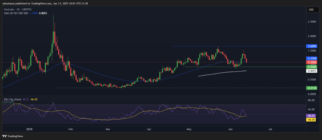 Fartcoin在年初暴涨700%后进入0.95-1.66美元窄幅震荡区间
