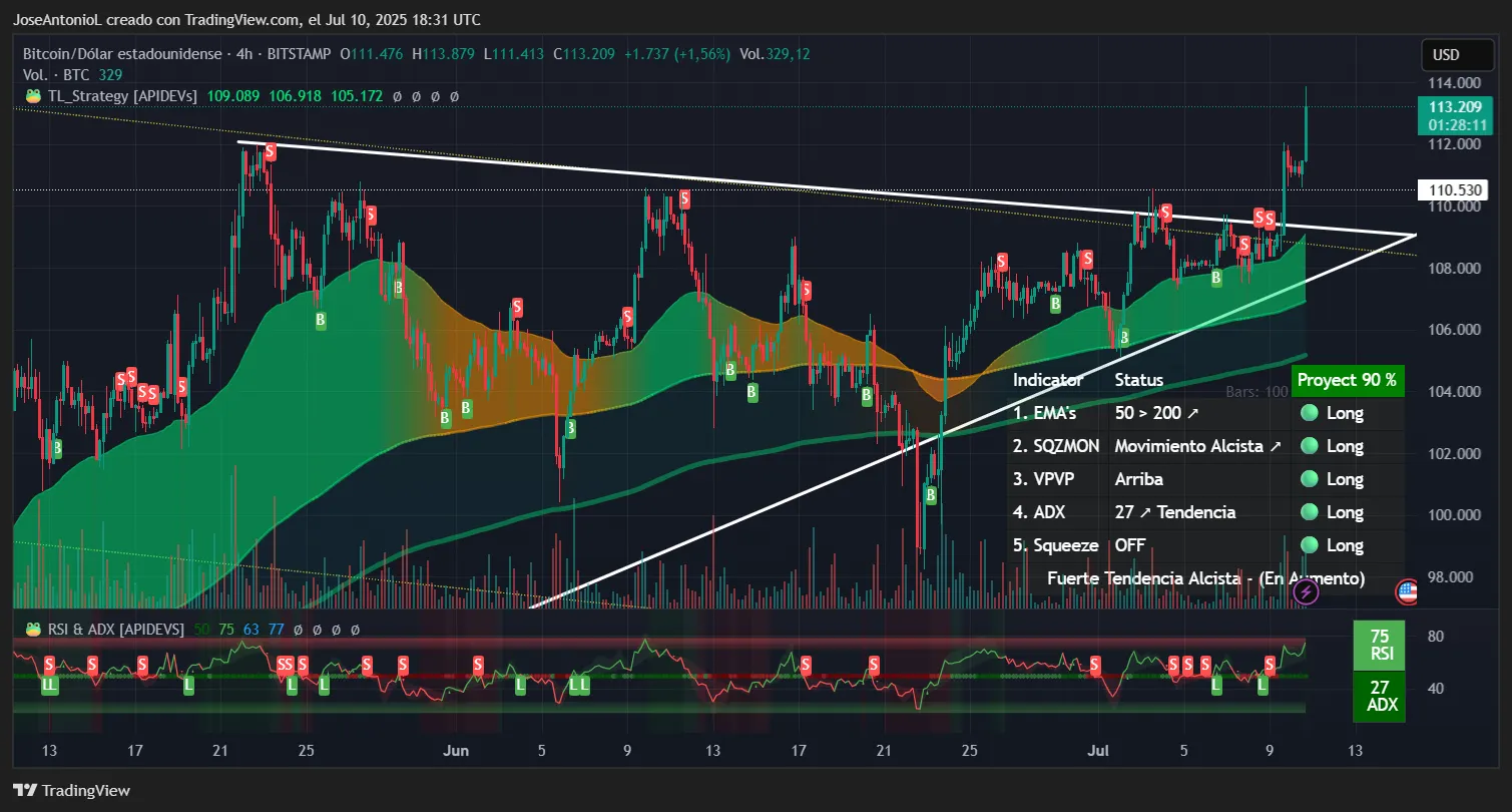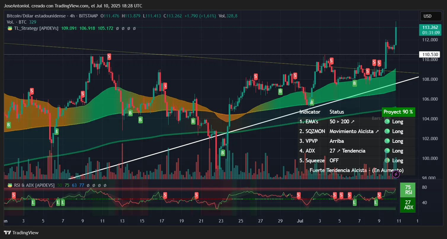当前正形成以4月回调低点和6月末低点为基准的看涨支撑线(图表中白线)。若确认有效,比特币可能围绕该支撑震荡,保持看涨动能并使11万美元在月底前成为新支撑。