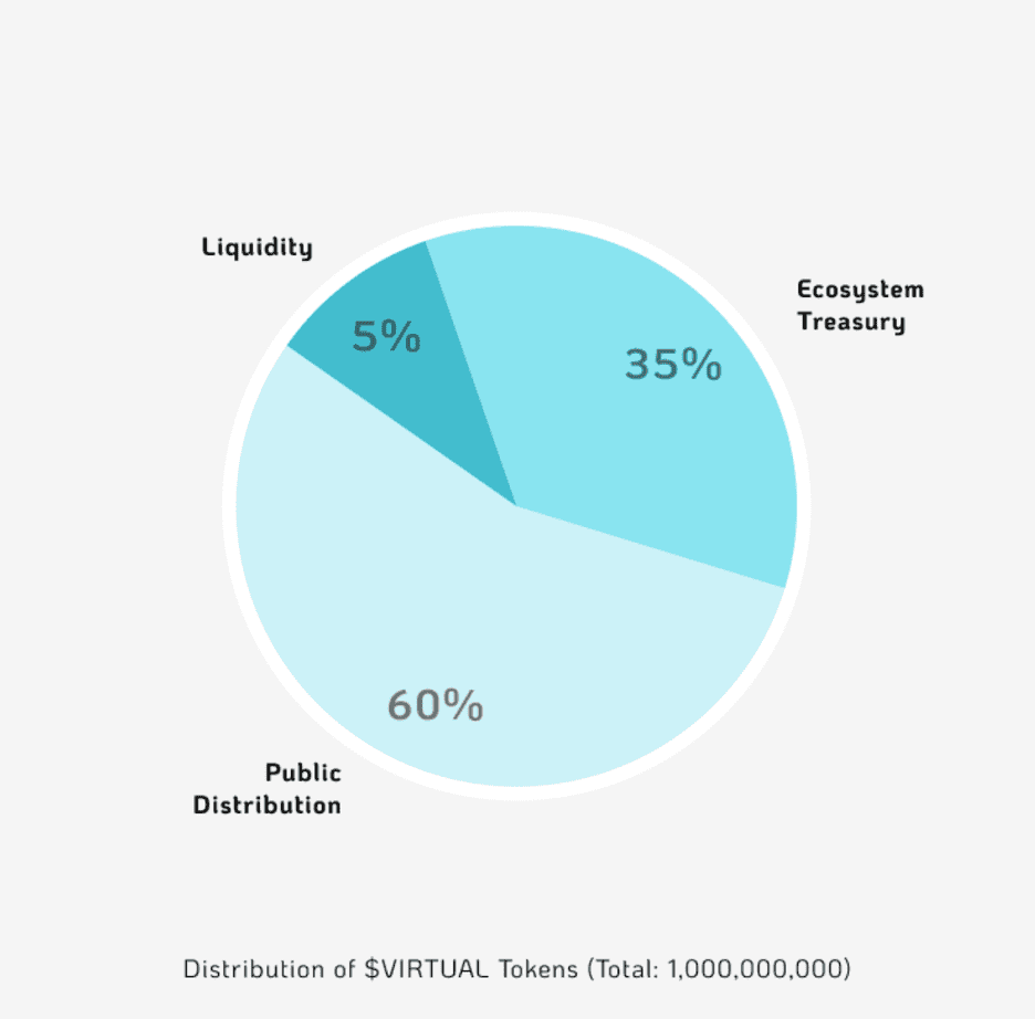 生态系统:35%(3.5亿代币)专用于生态系统金库。此分配用于社区激励和推动VIRTUAL协议生态系统内增长的计划。这将存放在DAO控制的多重签名钱包中,并且在未来3年内每年的排放量不超过10%,仅在获得治理批准后部署。