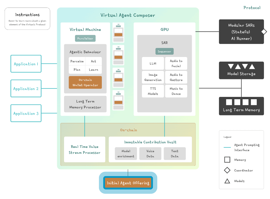 Virtuals Protocol 的核心是 composer stack,它是支持生态系统中AI操作的技术骨干。它可以总结如下: