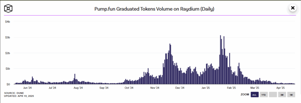 毫无疑问,Pump Fun在过去12个月中对Solana网络活动起到了重要作用。它是新代币以激进速度进入市场的铸币厂。但Solana能否在Pump Fun之外仍保持强劲的网络活动和对原生Solana加密货币的需求?链上数据可能会提供一些见解,揭示网络在有和没有Pump Fun的情况下的表现程度。后者在2024年11月至2025年2月期间对Solana的交易量贡献显著。