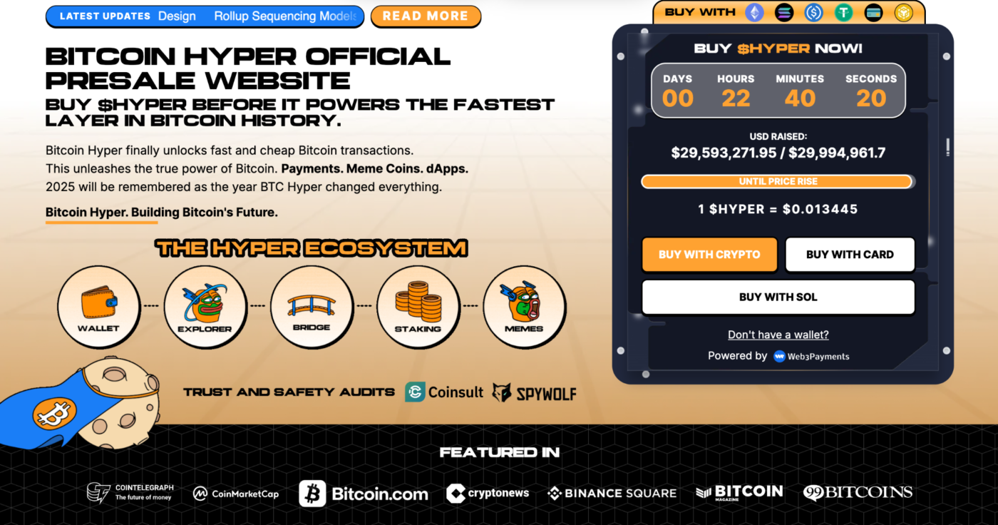 Bitcoin Hyper致力于提升比特币生态系统可扩展性并提高交易效率。随着交易员寻找与比特币长期理论保持一致的投资标的,关注度持续上升。