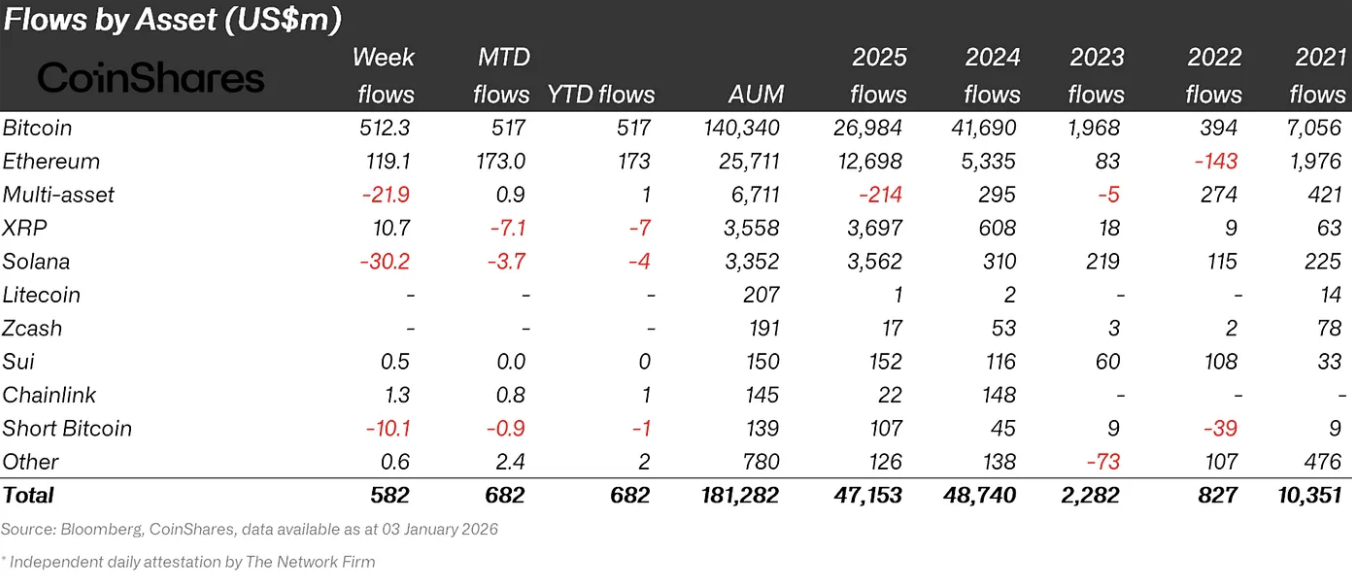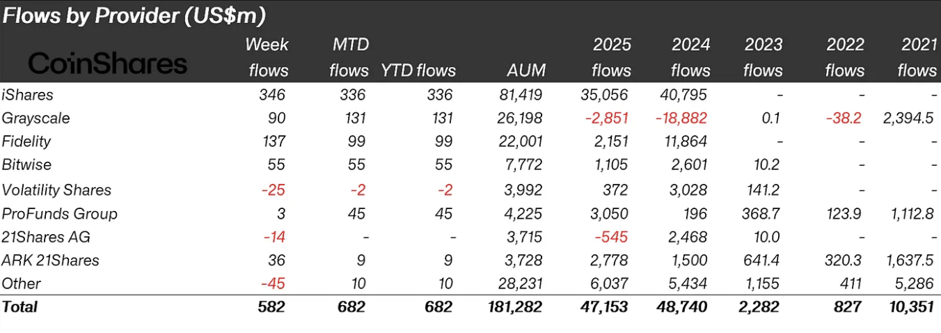 从提供商角度看,iShares领跑周度资金流入,富达与Bitwise紧随其后,强化了成熟资产管理人在捕捉机构需求方面的作用。年末市场动能复苏,最后交易周实现5.82亿美元净流入,同步推升月度与年度数据。