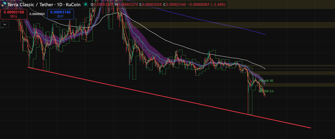 过去两年多时间里,Terra Luna Classic(LUNC)的价格悄然形成了加密货币领域最强势的高时间框架形态之一——一个波动率持续收缩的宏观下降楔形。与此同时,Terra Classic生态系统正逐步重建核心基础设施,当技术面开始回应这些基本面改善时,我们迎来了关键转折点。本文将深度解析技术结构、生态进展、USTC动态,以及为何2025年底至2026年可能成为LUNC的决定性时期。