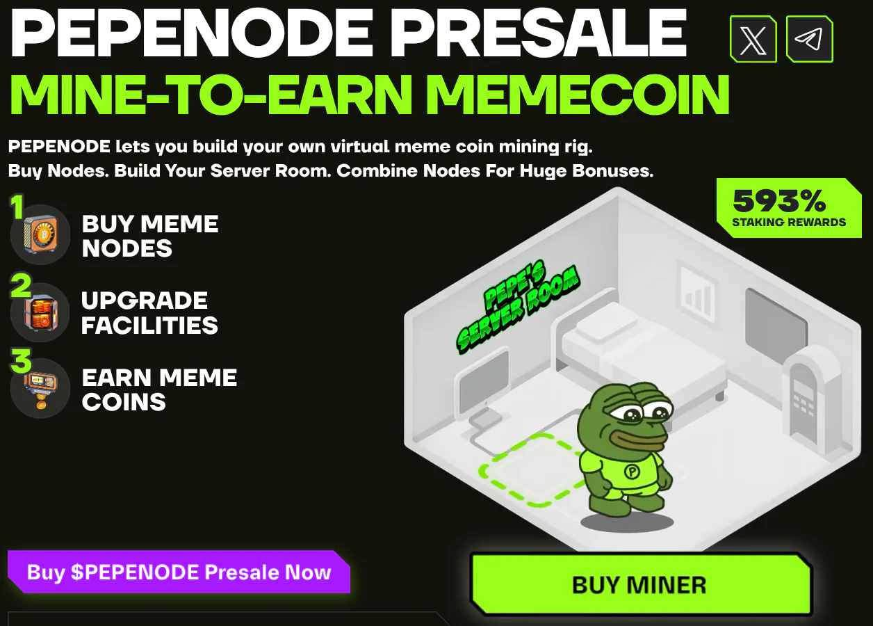 如果您在比特币盘整期间关注市场的投机前沿,PEPENODE ($PEPENODE) 是更具创意的模因币实验之一。它号称是全球首个“边挖边赚”模因币,借鉴了传统挖矿经济学,但将其包装在一个游戏化的仪表板和基于节点的奖励系统中,对日常用户来说易于上手。