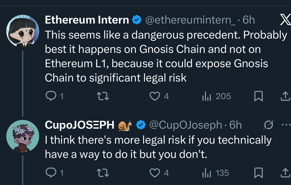 批评者则持不同观点。他们警告称,通过改变链规则来追回资金开创了危险的先例。一旦链干预过一次,未来就可能再次干预。长此以往,这会削弱信任,使系统显得不再中立。这正是Gnosis Chain当前面临的现实问题:它究竟是一个永不介入的中立结算层,还是一个愿意在极端情况下采取行动的网络?目前,资金已得到保障,但争论远未结束,其他链正密切关注此事。