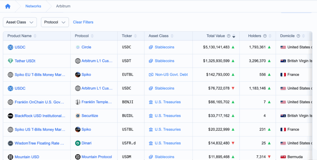 和成熟流动性。目前以太坊和Arbitrum更符合这些需求——过去一个月,得益于代币化股票活动,Arbitrum的RWA总锁仓量(TVL)激增32%,而Algorand除EXOD外几乎未见增长。