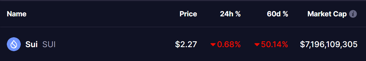 在2024年末经历了一轮令人印象深刻的反弹之后,主要的替代币种遭受了重创,Layer 1代币Sui (SUI)也不例外。在过去60天内,由于抛压增加,SUI的价值缩水了50%。然而,更广泛的加密货币市场现在显示出反弹的迹象,以太坊(ETH)本周上涨了6%,为替代币种提供了一些喘息空间。