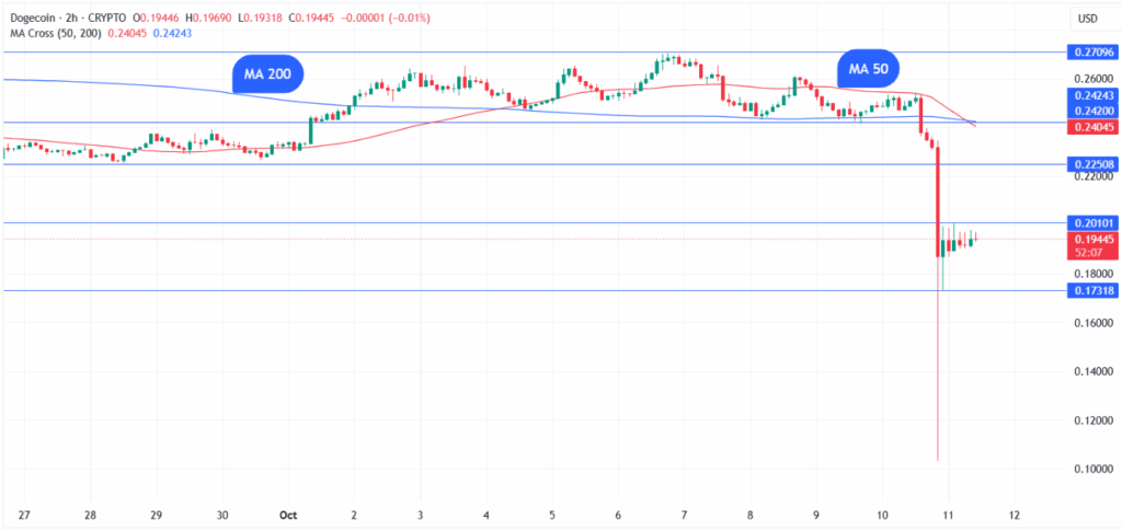 狗狗币确认短期图表现死亡交叉形态 市场清算压力加剧引发看跌动能
