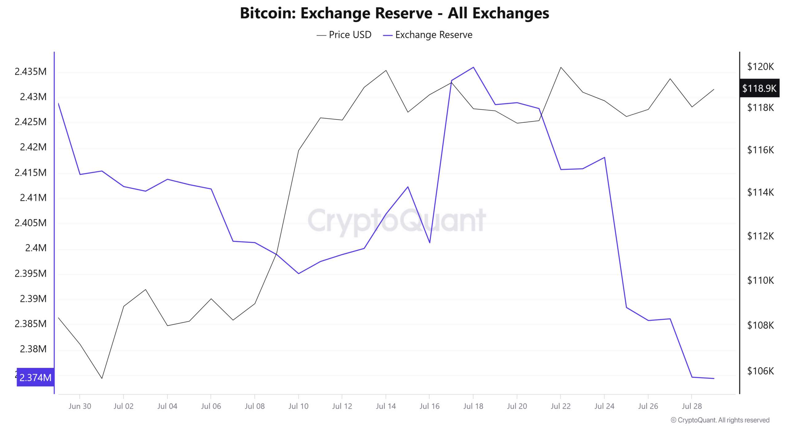 比特币当前交易价格维持在119,000美元附近,日内波动幅度不足1%,表面平静的市场可能正处在暴风雨前的蓄力阶段。整个7月份,比特币价格始终在114,728至123,091美元(历史新高)的狭窄区间内波动,但每次回调的深度都较前次有所收窄,这表明市场正在以越来越强的买盘托底。