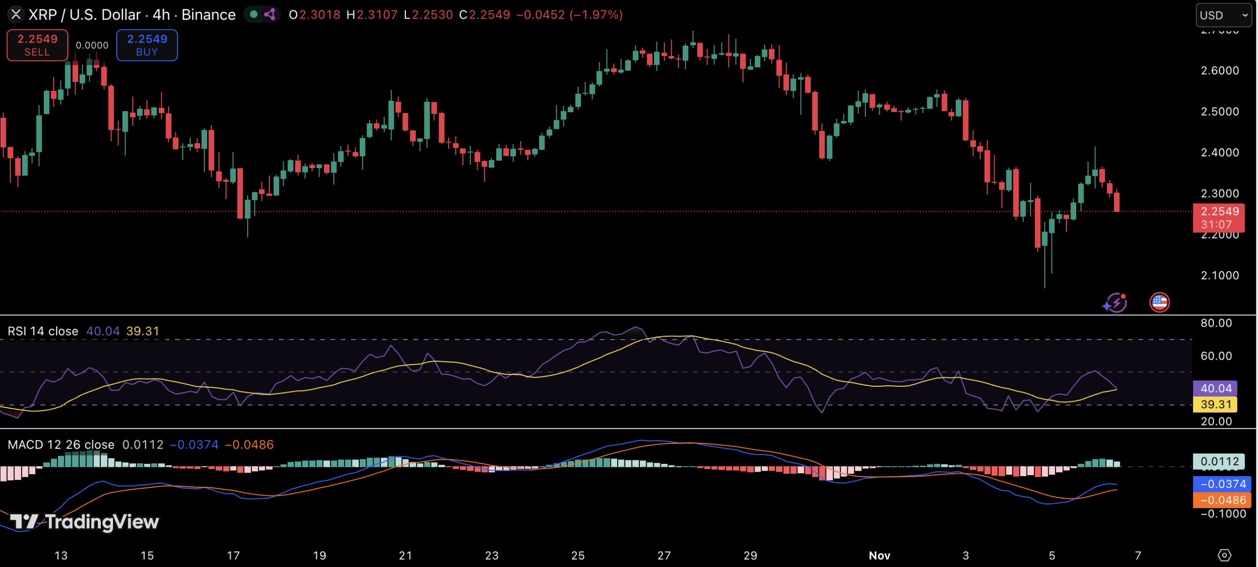 XRP在大多数山寨币下跌的情况下仍成功吸引了关注。该代币交易价格接近2.25美元,过去一小时下跌0.97%,本周下跌约8.4%,市值达到1357亿美元。