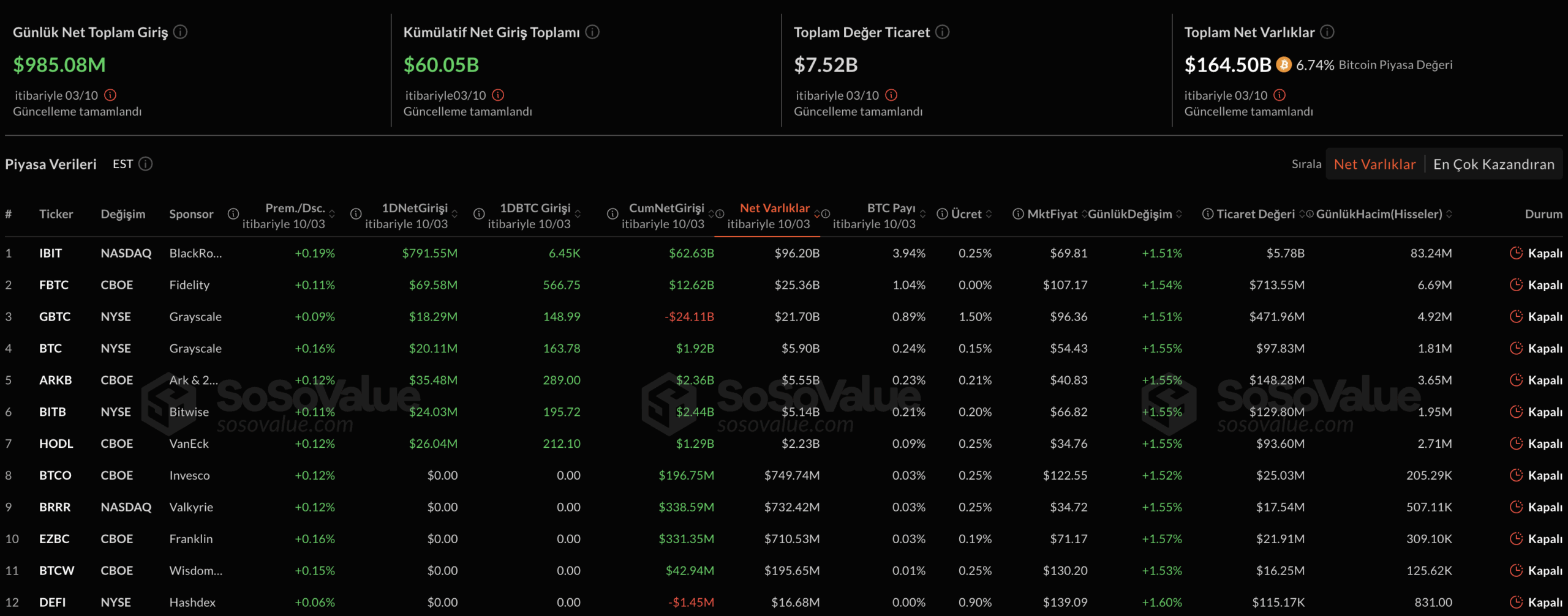 10月3日美国比特币现货ETF单日净流入9.85亿美元