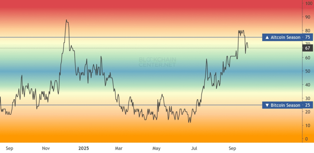 该形态由两个主要阶段组成:2018至2021年的初始杯体构建期,以及2022至2025年的二次整理阶段。随着山寨币市场临近潜在爆发点,投资者和分析师正密切关注走势。