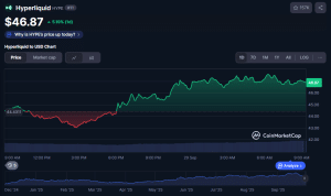 Wood虽未透露是否持有Hyperliquid头寸,但她评价道:"Hyperliquid是赛道新秀",并表示公司正"密切关注其市场表现"。受此言论影响,CoinMarketCap数据显示Hyperliquid原生代币HYPE在过去24小时内上涨超5%,截至美东时间凌晨3:23报46.87美元。