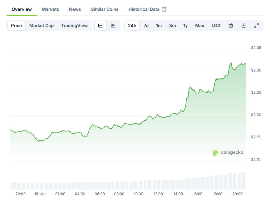 消息公布后,XRP出现显著价格波动。据CoinGecko数据显示,该代币在过去24小时上涨超7%,现报2.32美元。周线也呈现1.7%涨幅,表明随着ETF上市日期临近,市场兴趣正在复苏。