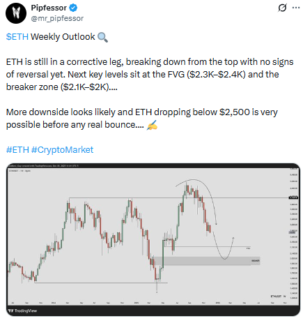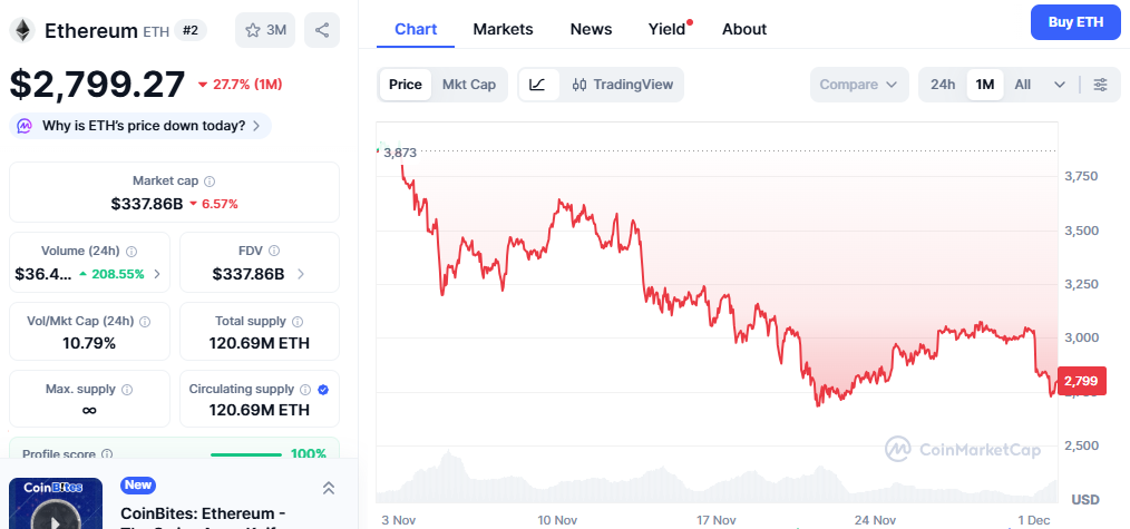 随着市场对"牛市十二月"的期待升温,以太坊价格大幅反弹的可能性依然存在。技术指标显示ETH在当前价位属于超卖状态,重新上探3000美元并进一步上涨的可能性仍在,这使其成为十二月值得关注的山寨币之一。但包括Pipfessor在内的顶级分析师预测可能