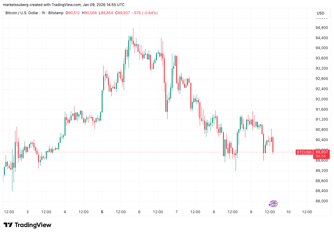 比特币(BTC)周五在华尔街开盘时徘徊在90,000美元附近,市场正为美国贸易关税消息做准备。