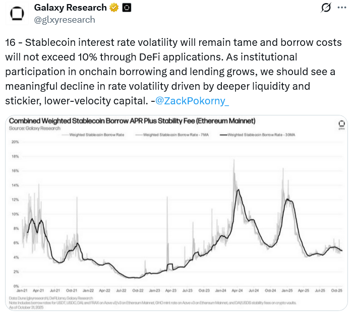 在价格预测方面,这位Dragonfly高管预计2026年底比特币将突破15万美元,但市场份额会有所下降。Galaxy Digital则认为2026年市场波动过大难以精准预测,明年末价格可能在5万至25万美元区间震荡。