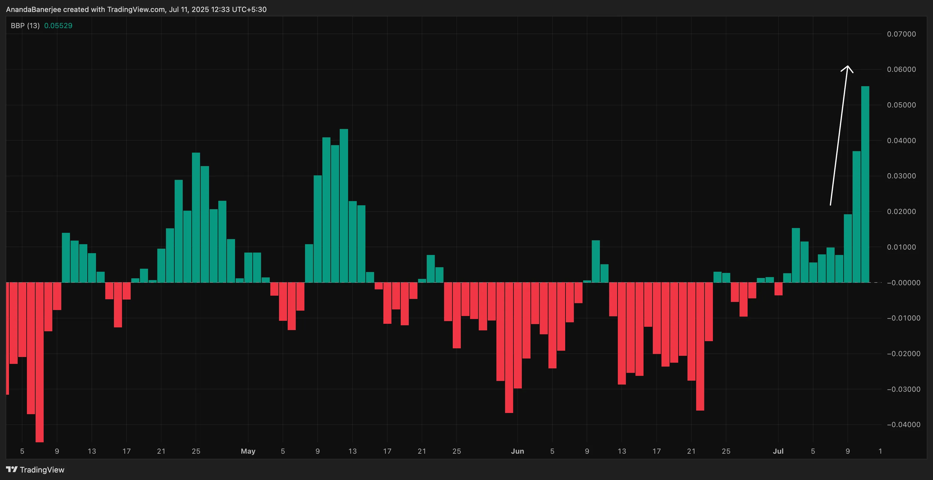 然而,链上指标讲述了一个更为微妙的故事。衡量买方力量的Elder-Ray多头指数已连续四天攀升,这表明尽管近期K线出现明显上影线(卖方获利了结),但多头 conviction 仍然存在。