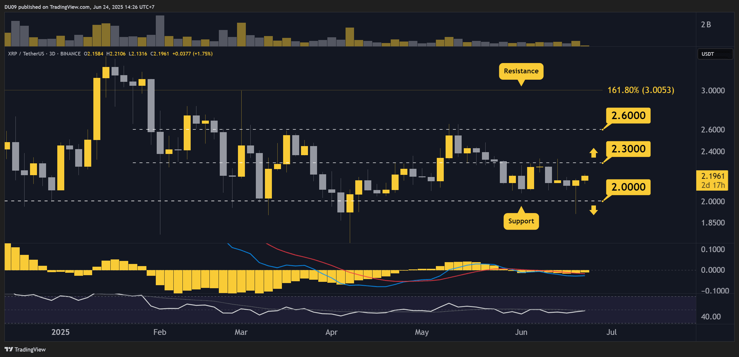 过去24小时内,XRP价格在2美元支撑位反弹并触及2.2美元。随着市场对中东冲突的担忧缓解,买家迅速回归。乐观情绪重燃促使价格快速反应,或将很快测试2.3美元的关键阻力。