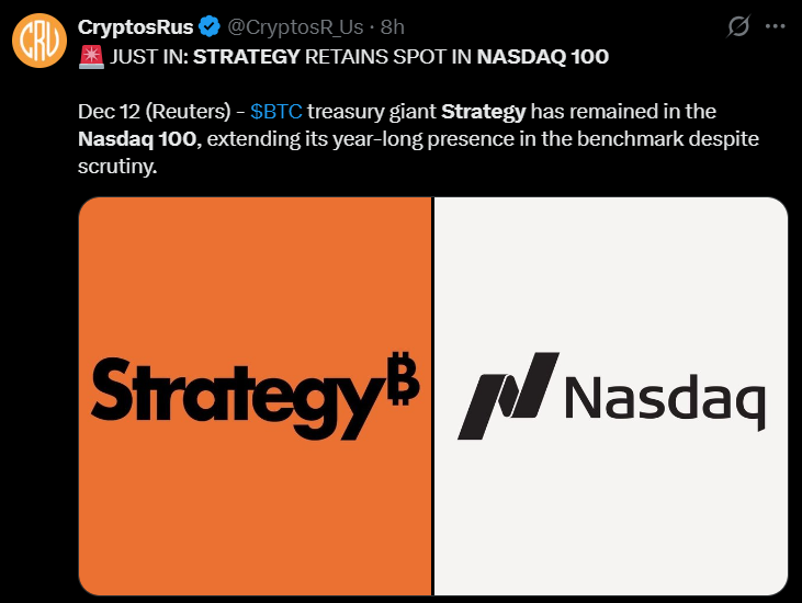 在创新投资与投机行为之间取得平衡,是Strategy能否稳居纳斯达克100指数的关键决定因素。