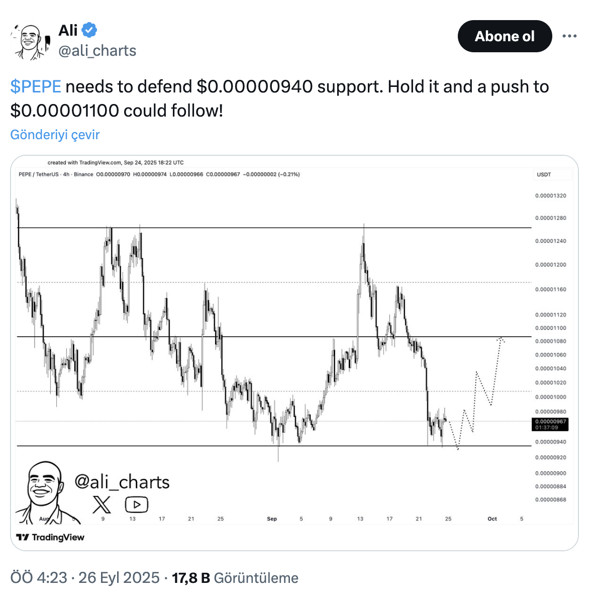 若PEPE再度未能突破0.00000940美元阻力位,后续可能下探0.00000900美元、0.00000880美元及0.00000868美元等目标位。跌破这些支撑或将确认该代币进入长期熊市周期。