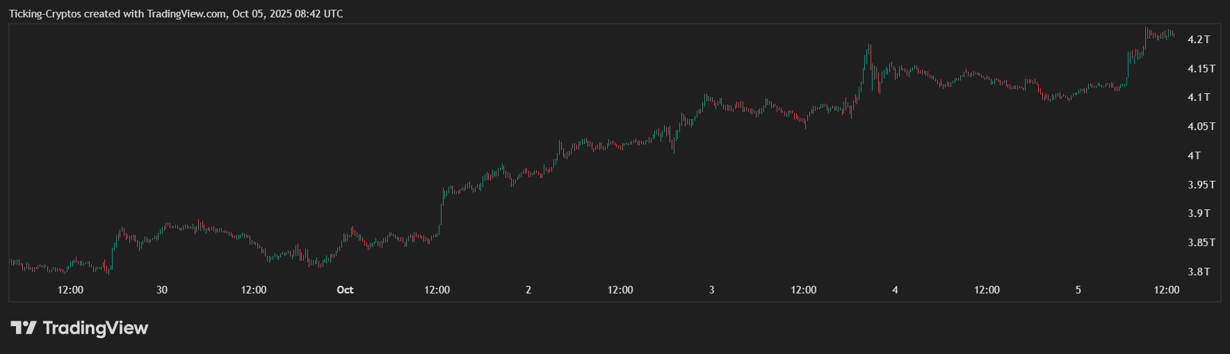 过去一周加密货币总市值走势 - TradingView