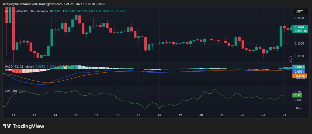 此外,WLFI的Chaikin资金流向指标(CMF)稳定在0.12,显示市场存在温和买入压力。资金流入量大于流出量,暗示看涨倾向,但力度尚不强劲。通常该数值高于0.10即预示上行动能初现。