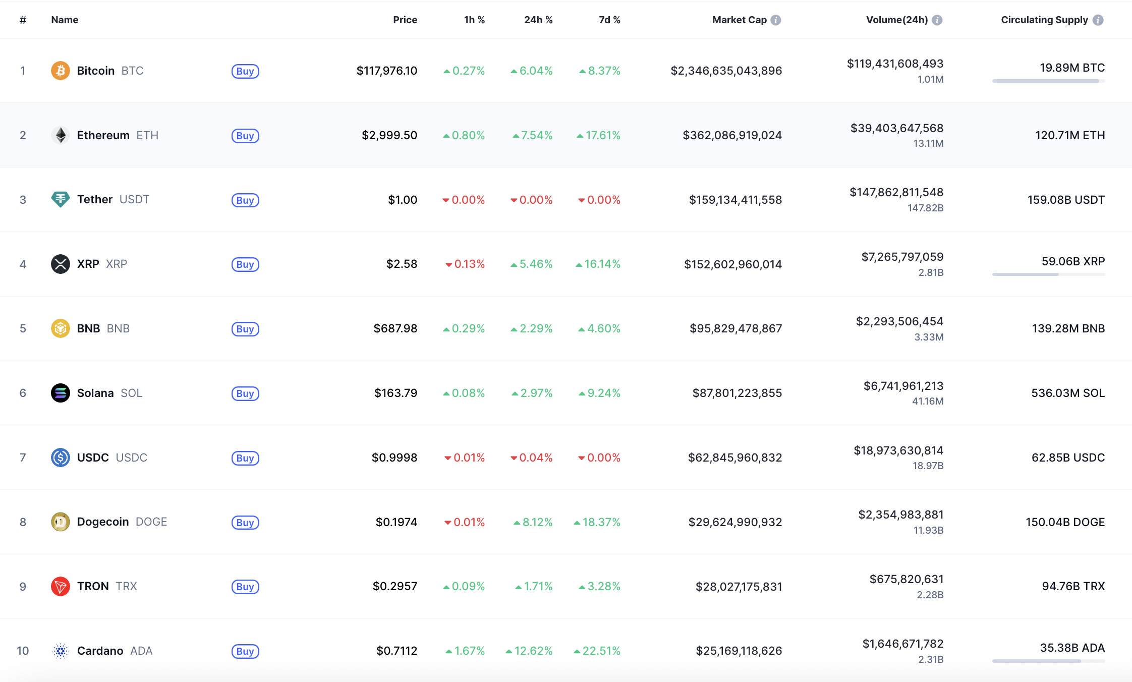 根据CoinMarketCap数据显示,本周临近结束时多头仍掌控着市场主动权。