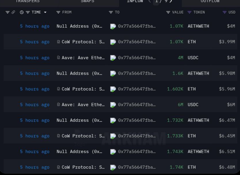 交易日志显示精确的1070枚ETH、1600枚AETHWETH以及600万美元USDC兑换为ETH等记录。这些活动暗示了有计划的吸筹策略。