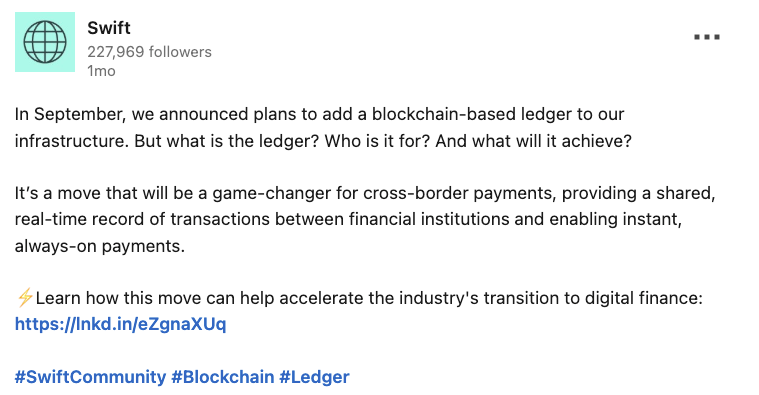 环球银行金融电信协会(SWIFT)已对法国兴业银行的欧元稳定币进行了测试,此项合作旨在提升传统金融体系与基于区块链的资产之间的互操作性。