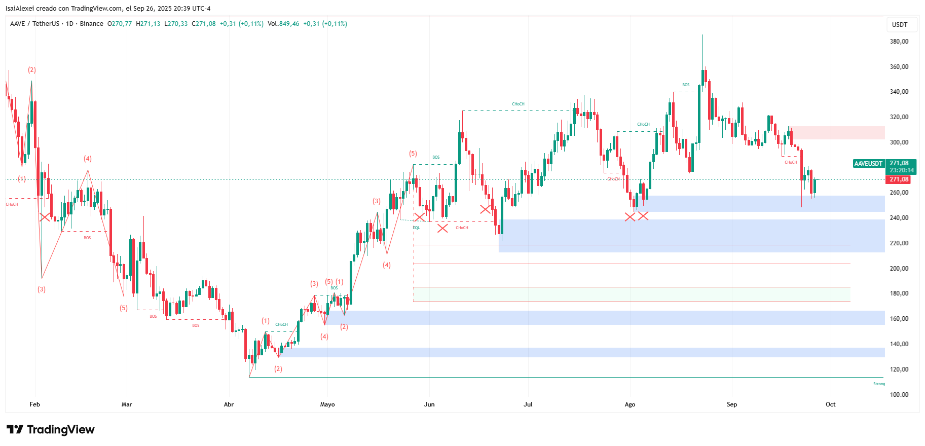 Aave(AAVE)当前报价271.15美元,24小时微涨0.08%。虽然出现小幅反弹,但周线仍下跌9.24%,月跌幅达15.40%。不过从更长周期看,该代币近半年累计上涨65.7%,年涨幅64%,现市值41.3亿美元,日交易量4.57亿美元。