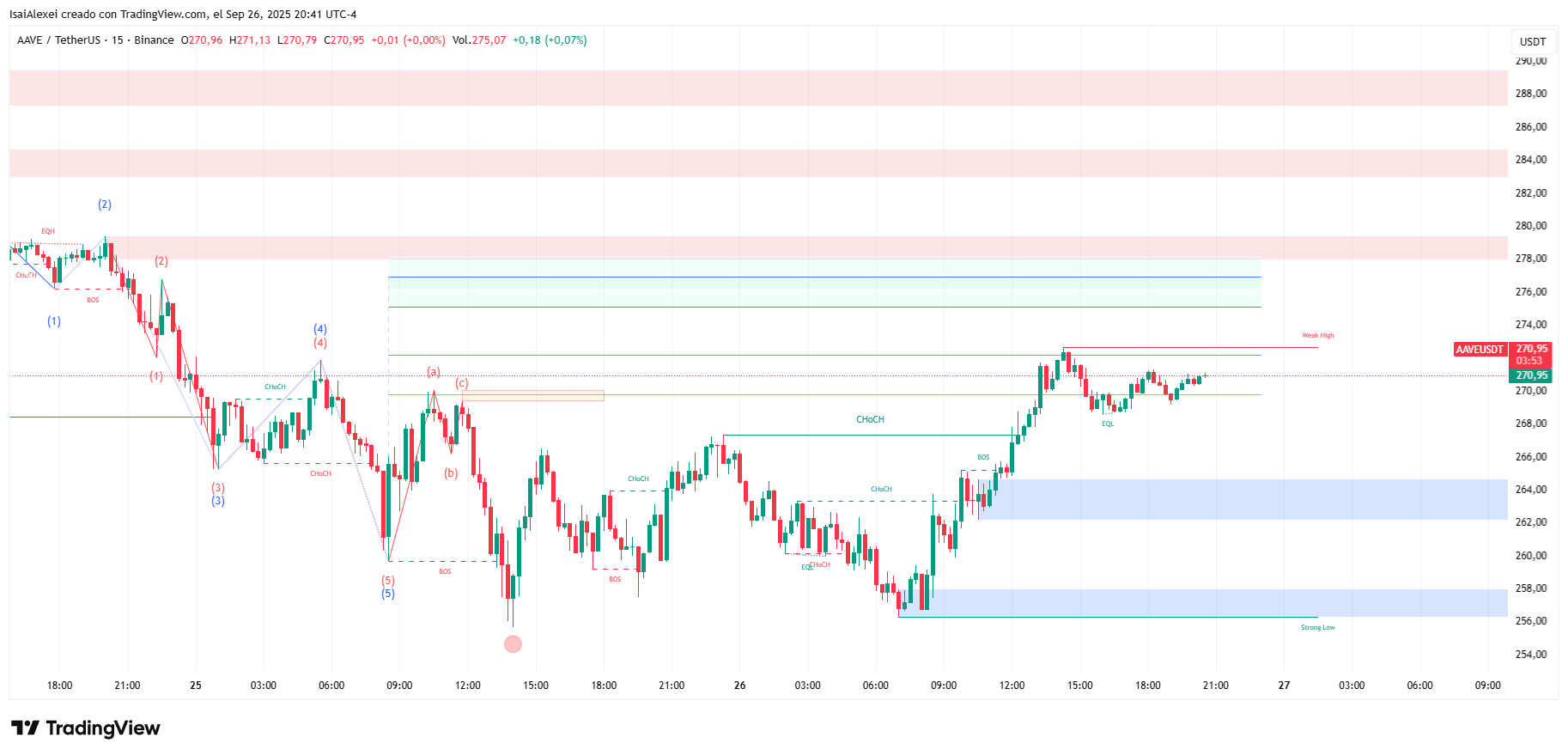 AAVE价格仍远低于670美元的历史峰值,目前在260-265美元强支撑区间上方震荡。280-290美元区域存在明显阻力,该价位卖压持续抑制上涨尝试。震荡指标与均线系统显示中性格局,预示在加密市场整体情绪转变或新多头动能形成前,AAVE可能维持区间波动。