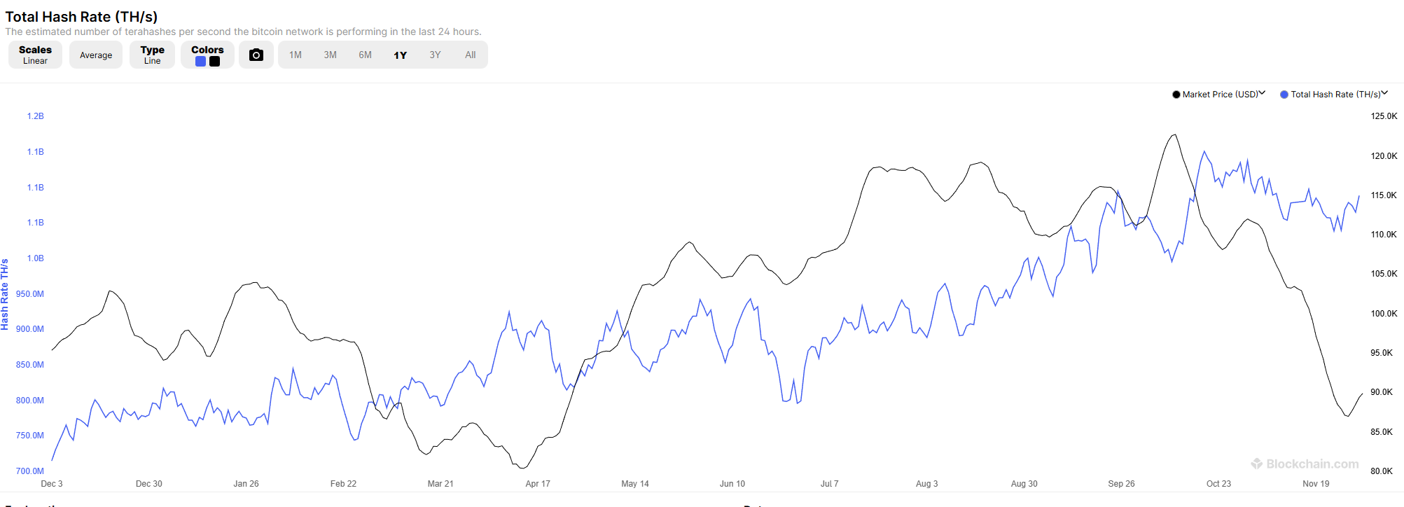 相比大型上市矿企44美元/PH/s的中位数综合成本,算力收益已从第三季度的55美元/PH/s骤降至当前的35美元/PH/s。对行业大多数参与者而言,这已不是利润空间压缩的问题,而是直接陷入亏损境地。尽管收益持续蒸发,全网算力仍逼近1.1 ZH/s,行业竞争持续白热化。