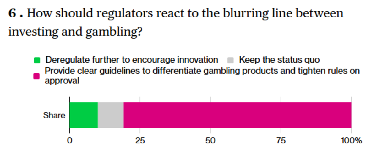尽管多数受访者预期游戏与金融终将融合,但他们也预计监管机构将着手处理交易与赌博界限模糊的问题。