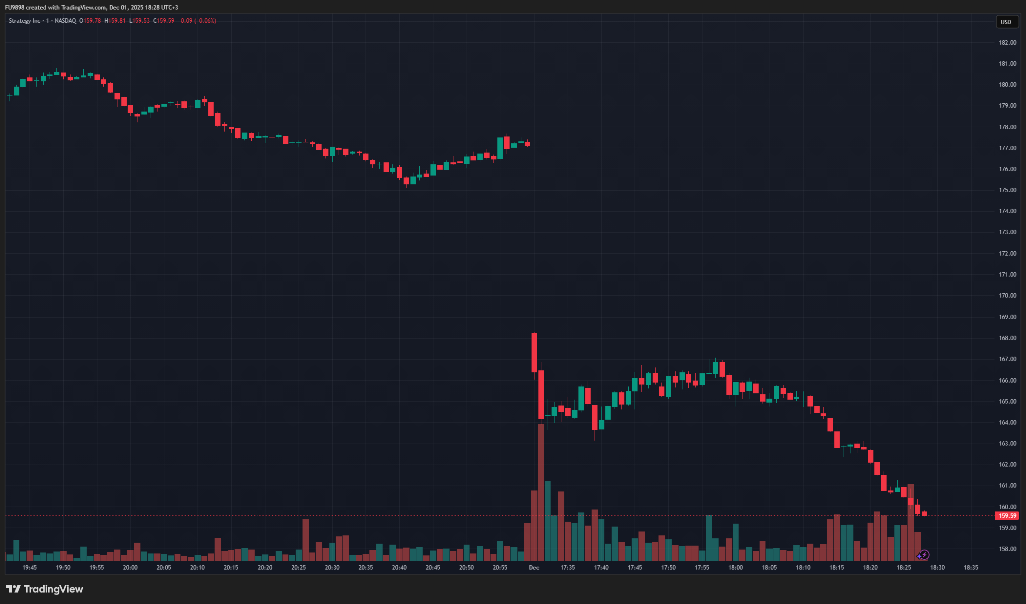 比特币日内约5%的跌幅在美股开盘后迅速传导至股市。持有大量比特币头寸的MicroStrategy公司成为这波抛售潮中受影响最严重的企业之一。该公司A类股收盘报164.92美元,单日下跌6.92%。过去一个月该股累计下跌37.69%,清晰反映出投资者风险偏好恶化。该公司目前持有65万枚比特币,平均成本为74,436美元。尽管近期价格下跌,其持仓总价值仍达559.4亿美元,较成本价保持15.63%的浮盈。