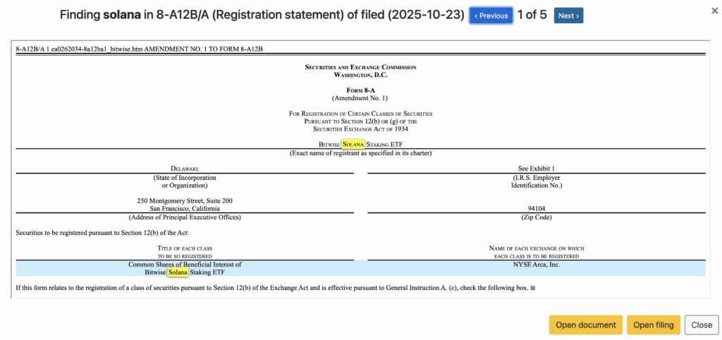 Bitwise Solana质押ETF(BSOL)筹备上市 提交修订版8-A文件