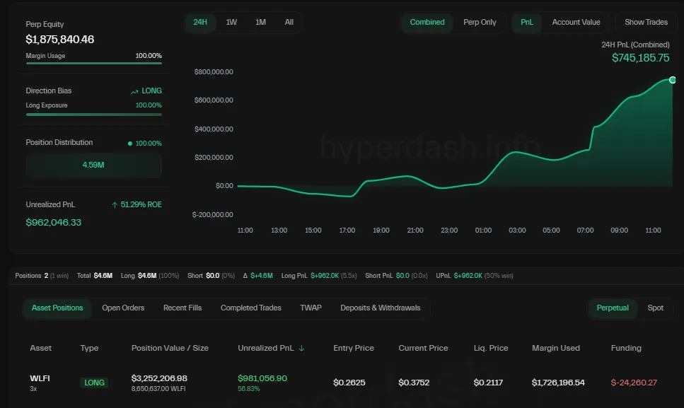 该交易者采用3倍杠杆操作,在放大潜在收益的同时也承担更高风险。这种激进策略反映出市场对WLFI上市后价值攀升的强烈预期。
