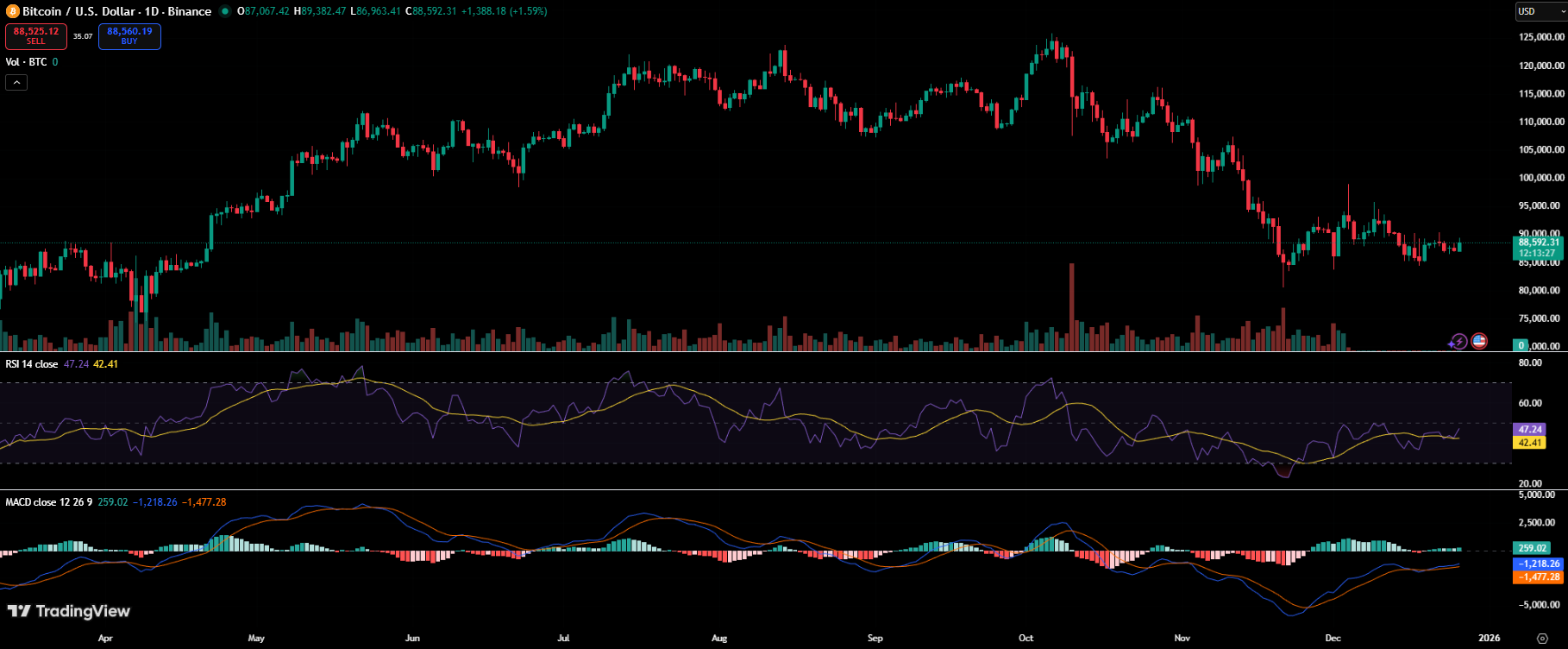 截至撰稿时,BTC交易价格约为88,500美元。