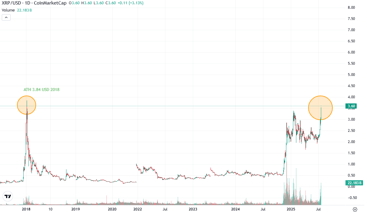 资金正从比特币轮动到高风险资产。以太坊突破3600美元,瑞波币单日暴涨17%,突破3.5美元逼近2018年历史高点。