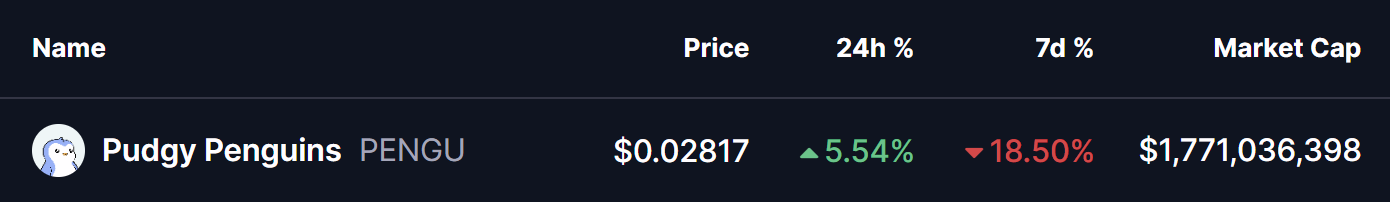 经历一周的暴跌行情后,加密货币市场初步显现企稳态势。以太坊(ETH)在7日内重挫超10%触及3829美元低点后,目前重新站上4000美元关口。这波修复性反弹同时提振了包括胖企鹅(PENGU)在内的各类山寨币市场情绪。