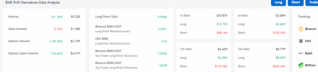 随着期货未平仓合约小幅下降,期权交易量激增反映出更强烈的对冲需求。各交易所多头和空头头寸出现分化,为BNB的短期方向增添了矛盾信号。在新链上数据和衍生品指标显示交易行为转变之际,BNB经历了剧烈波动,这些数据同时揭示了可能引导资产下一步走势的关键支撑区域。