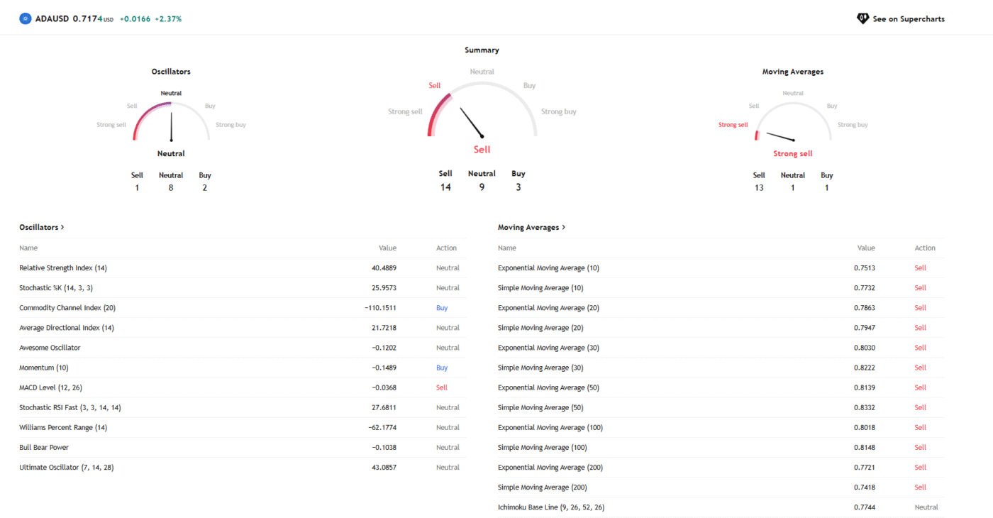 除非ADA能伴随高成交量突破0.73-0.75美元阻力区,否则当前反弹可能只是暂时喘息。ADX和RSI等技术指标仍显示强烈看跌压力。