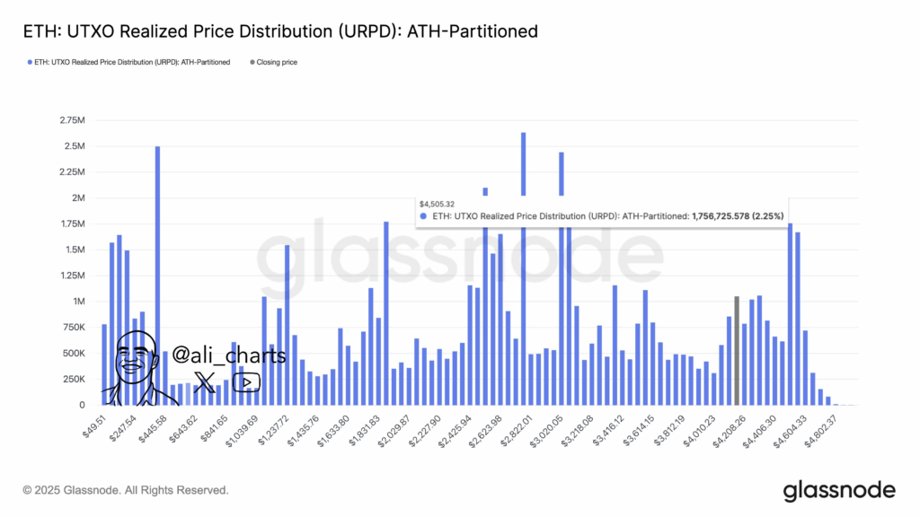 市场专家Ali Martinez指出,4505美元是以太坊需要关注的关键阻力位。